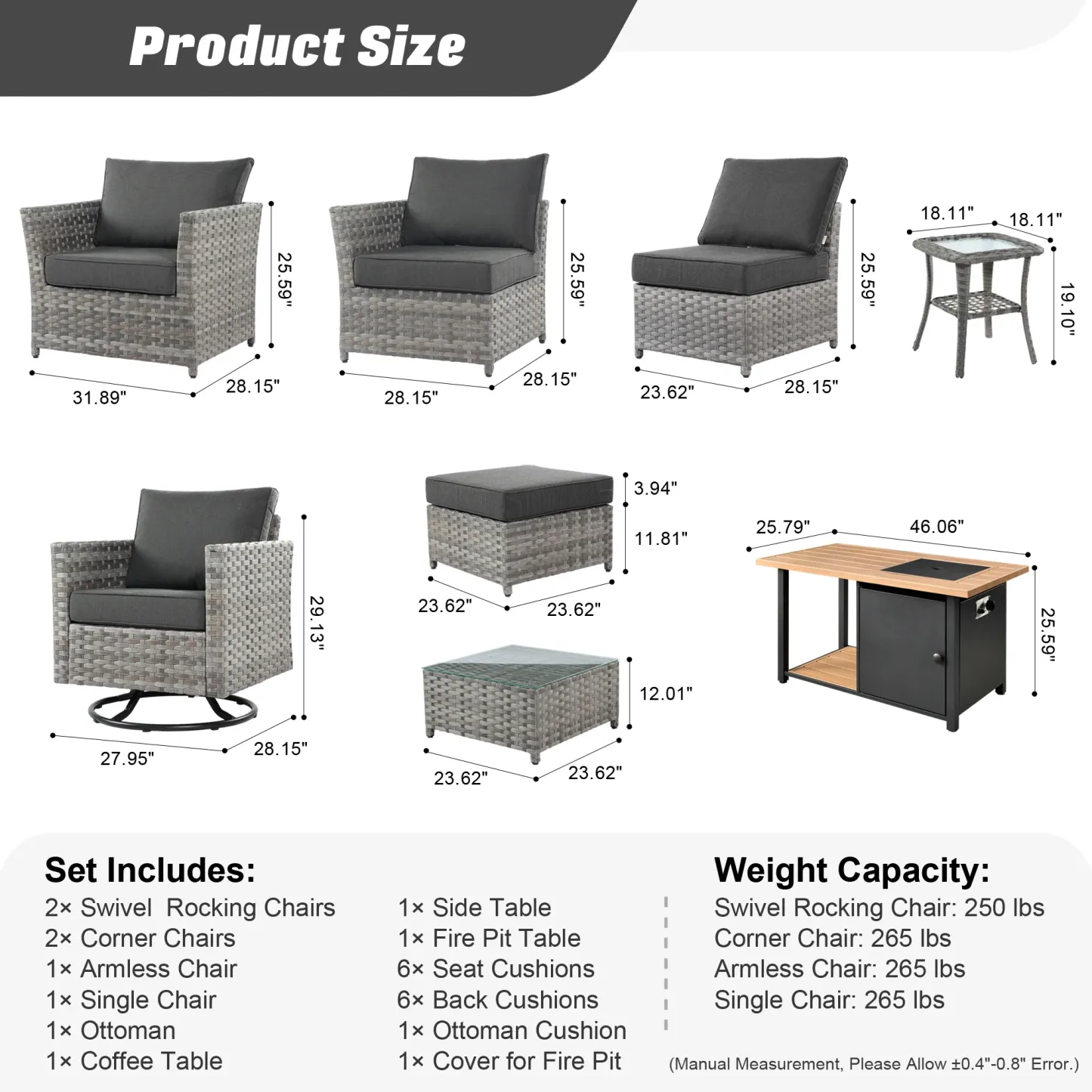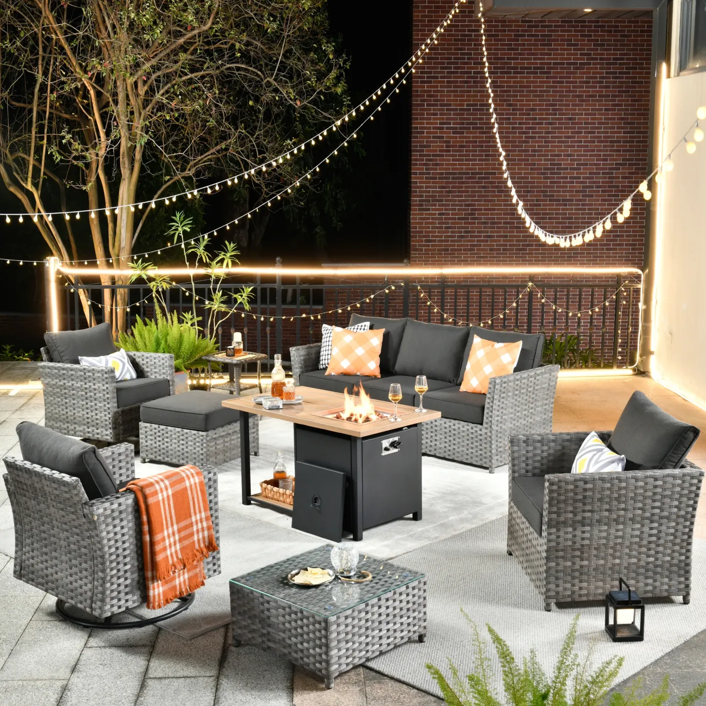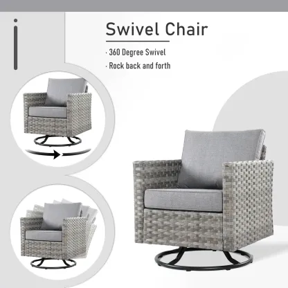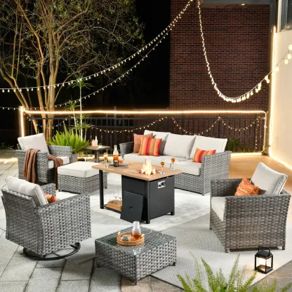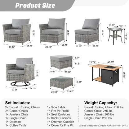 OVIOS Patio Furniture Set 10-Piece include 42"Rectangle Fire Pit Table&Swivel Chairs, Partially Assembled,BRS Series