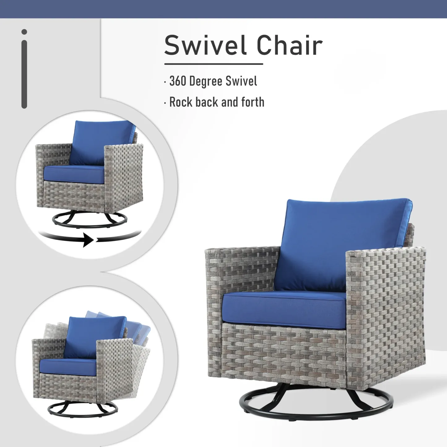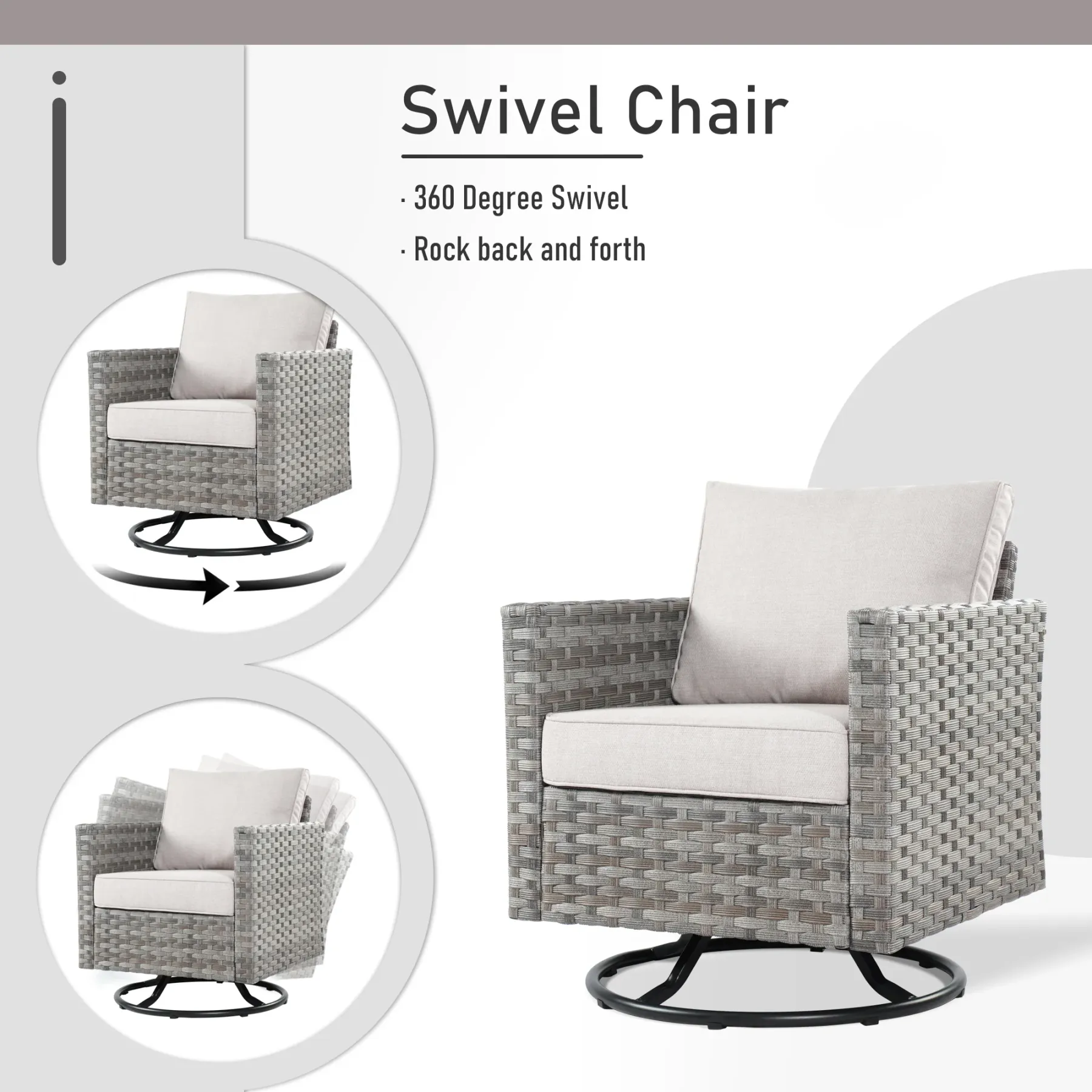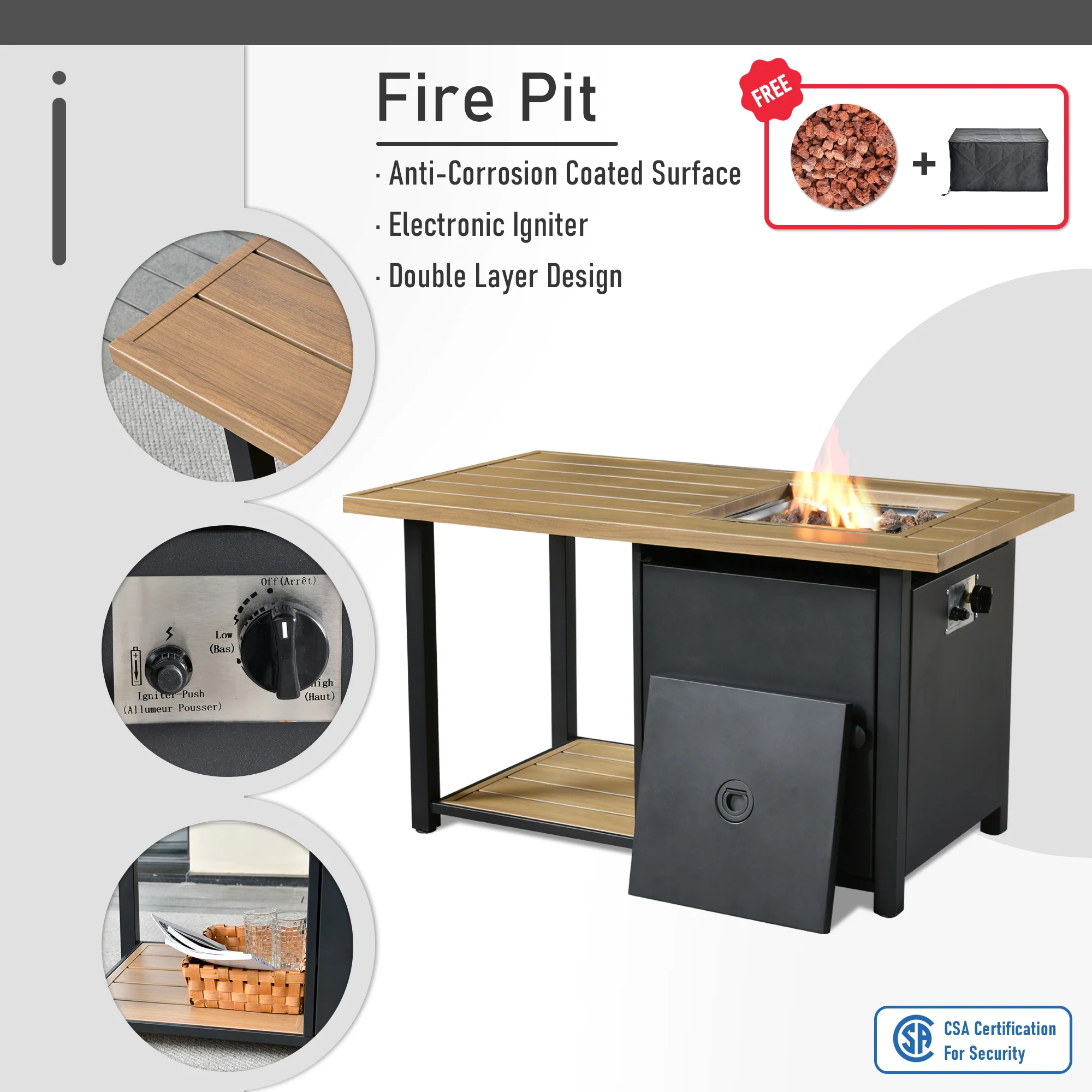 OVIOS Patio Furniture Set 10-Piece include 42"Rectangle Fire Pit Table&Swivel Chairs, Partially Assembled,BRS Series