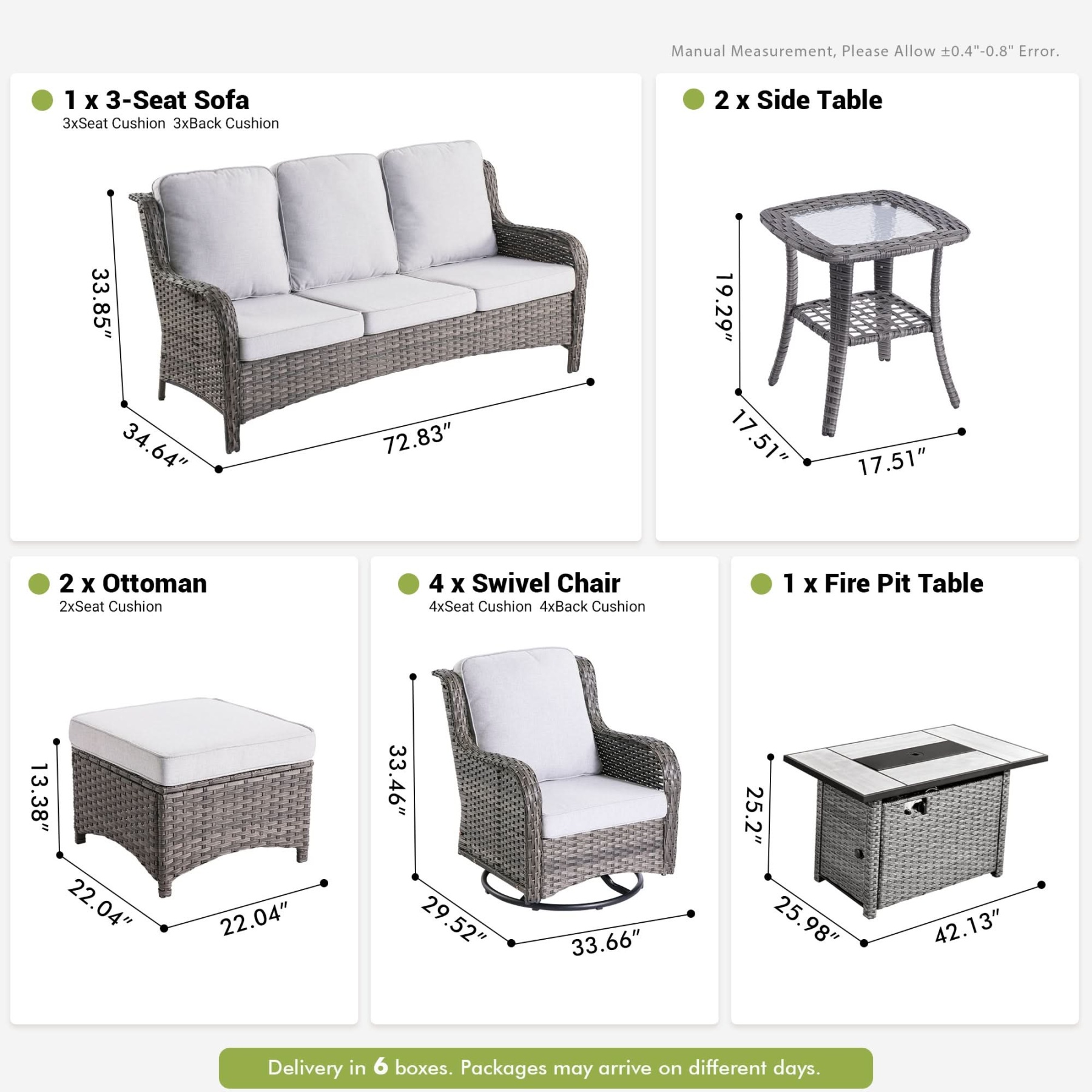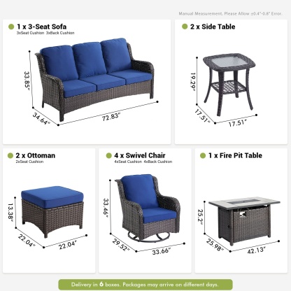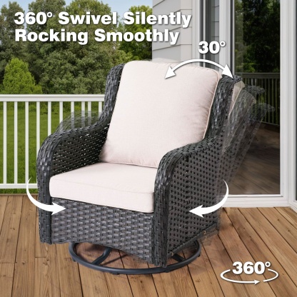 Ovios 10 Pieces Patio Furniture Set with Fire Pit Table Outdoor Wicker Sofa Loveseat and Swivel Rocking Glider Chairs