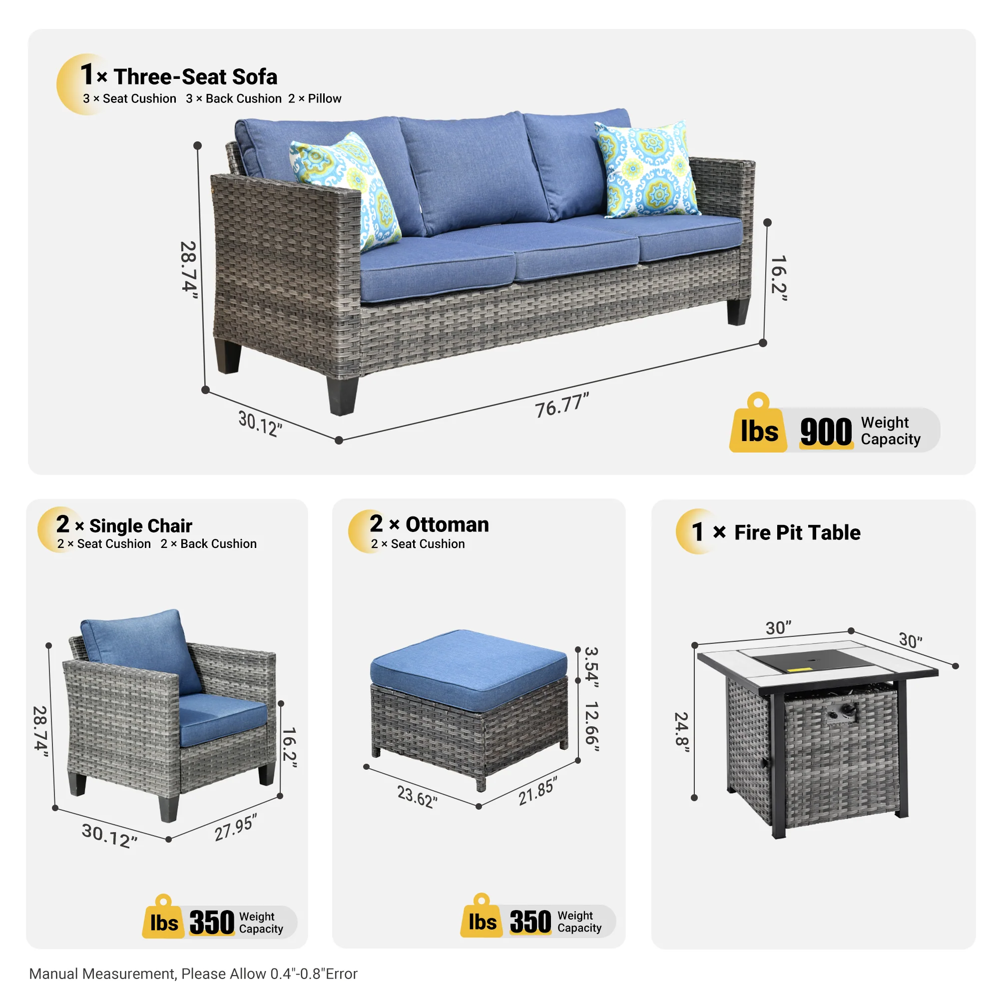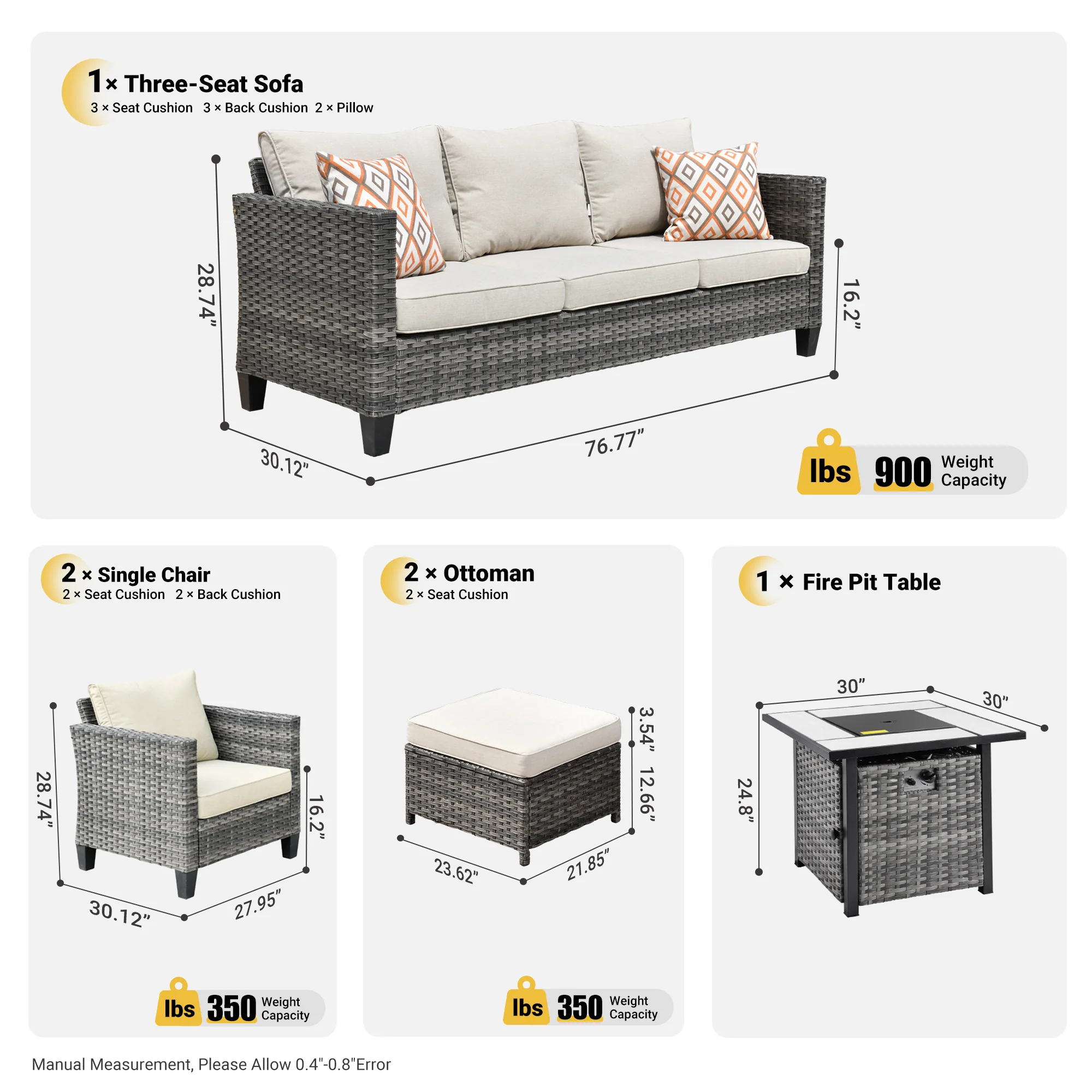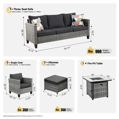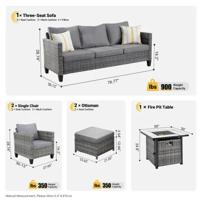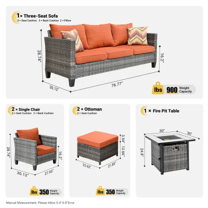 OVIOS Patio Conversation Set 6-Piece with 30'' Fire Pit Table and Vultros Set