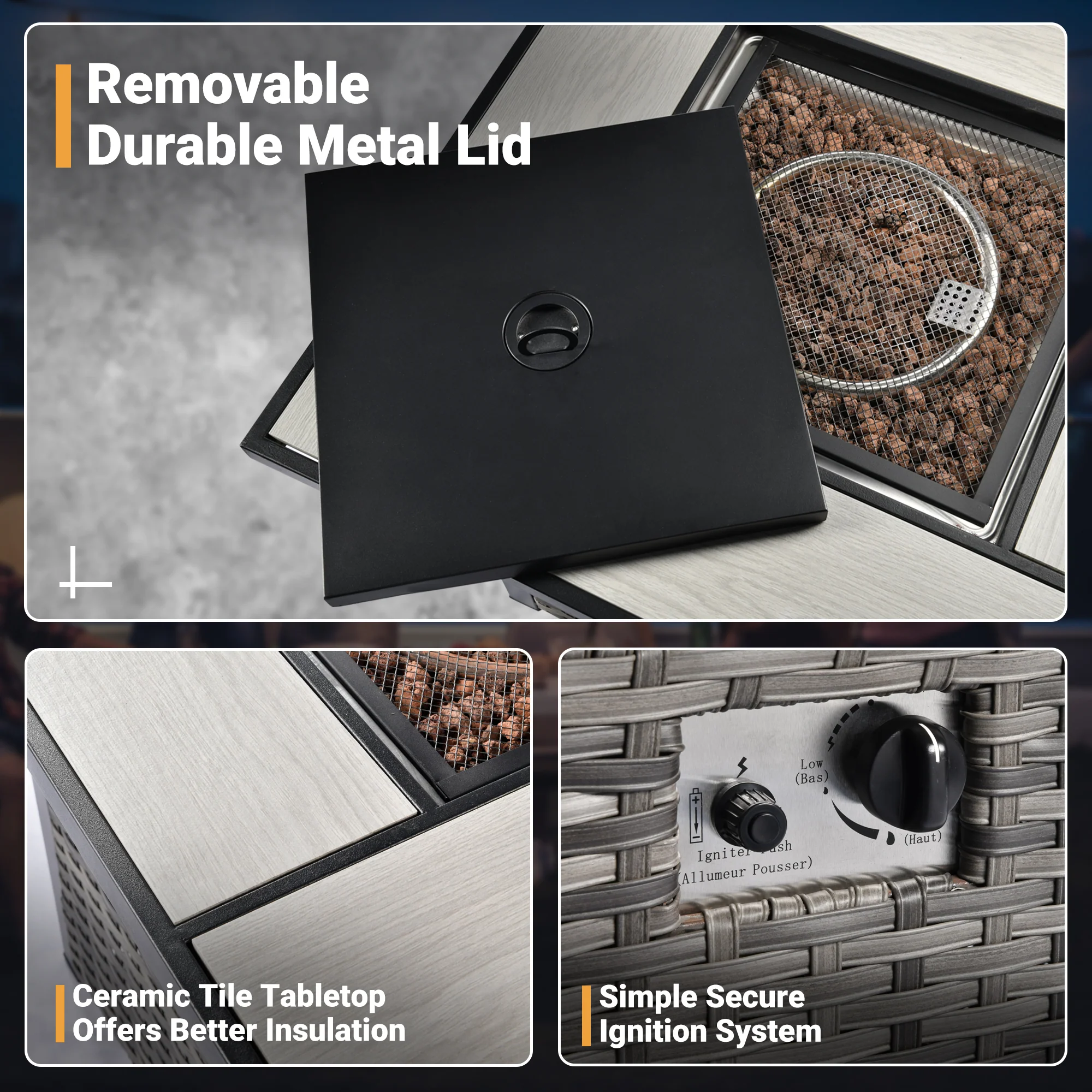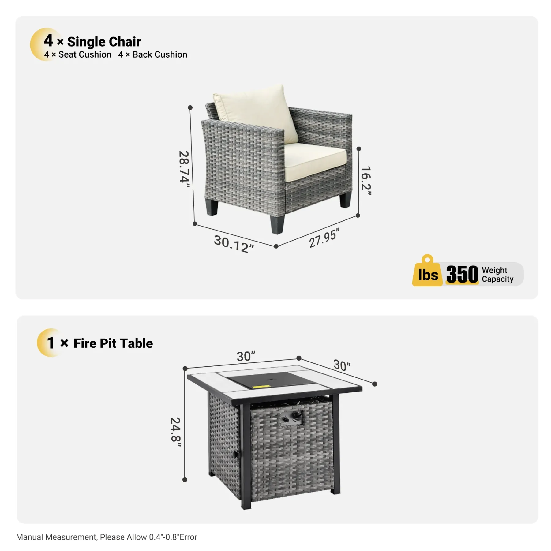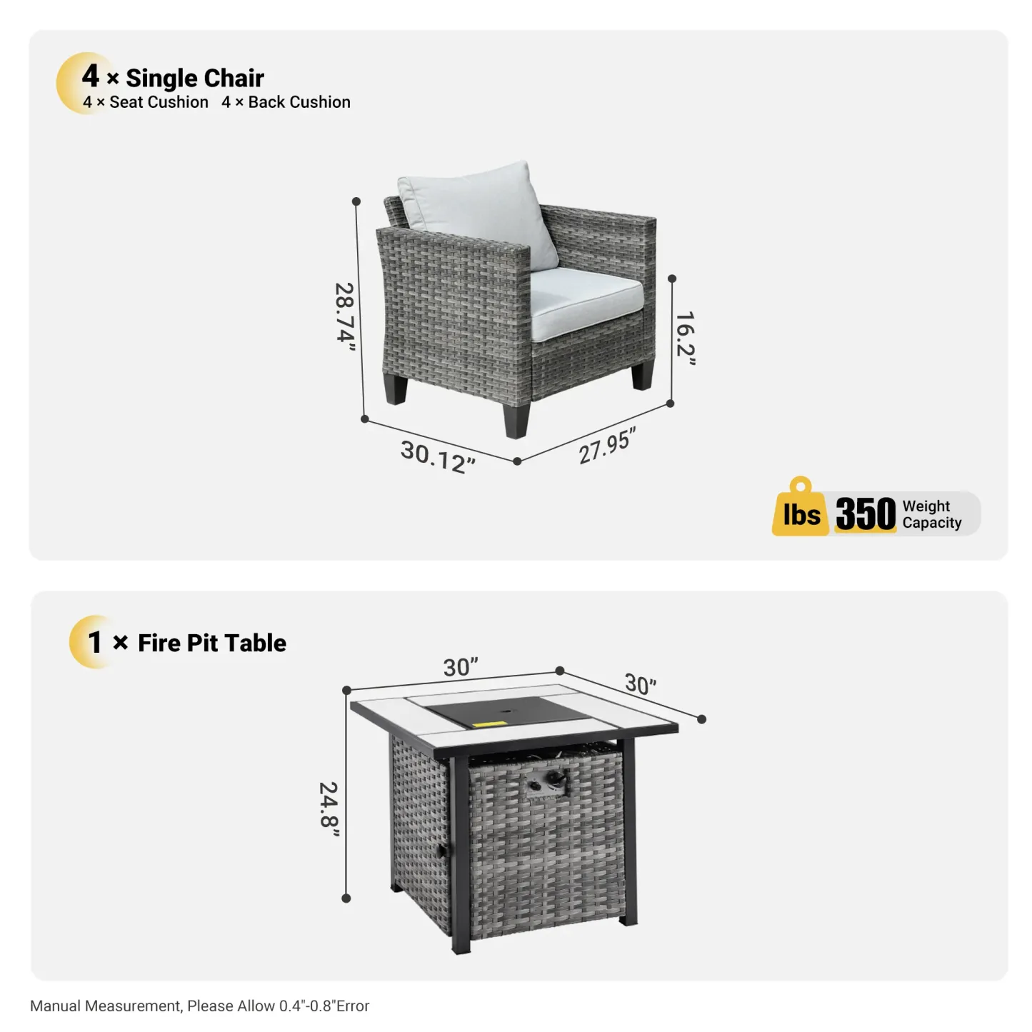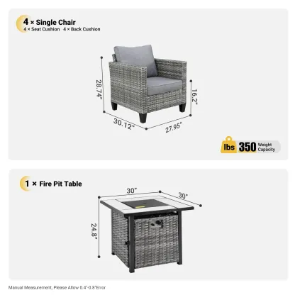 Ovios Patio Furniture Set 5-Piece with 30'' Fire Pit Table and Vultros Chairs